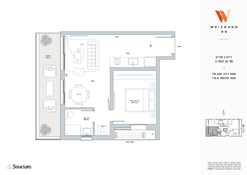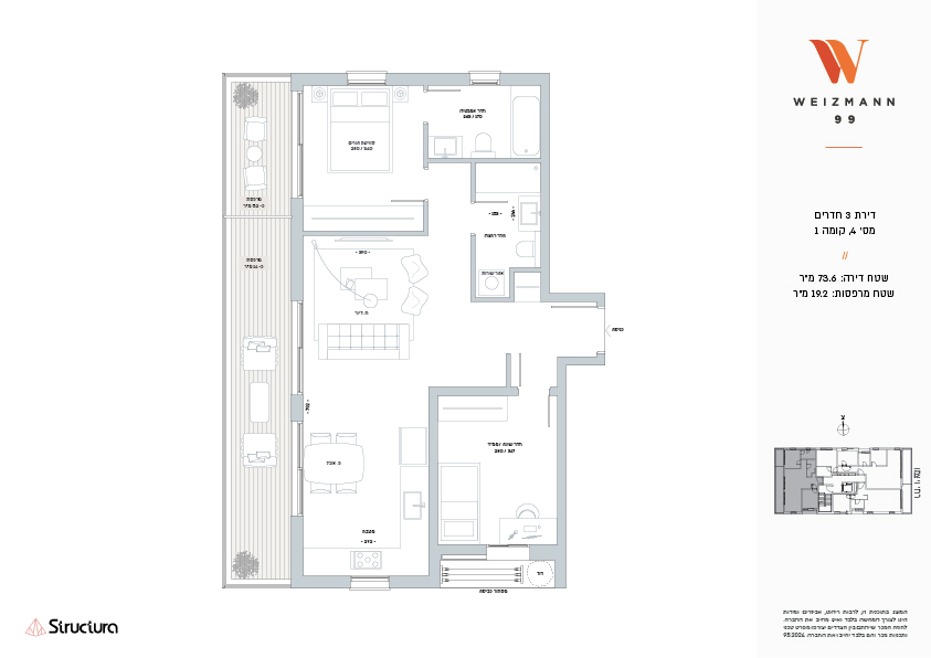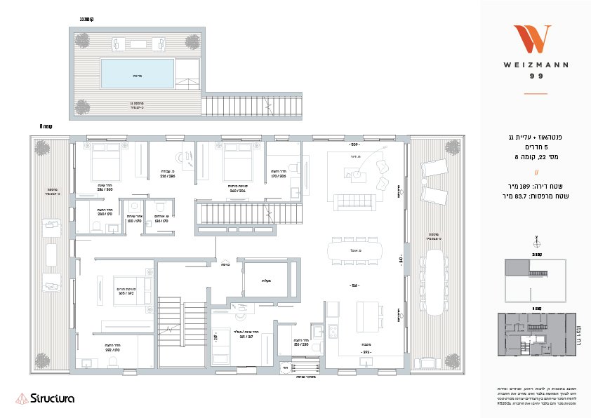 הבית בויצמן 99 מגיש לכם יצירת מופת תל אביבית. בניין בעיצוב אדריכלי ייחודי, בן 8 קומות ו 22- דירות בלבד. מיעוט הדירות מאפשר לדיירי הבניין ליהנות מחווית מגורים שלווה ואינטימית עם 3 דירות בלבד בקומה, בהן דירות 2-3 חדרים מרווחות ומגוון דירות מיוחדות: דירות גן, מיני-פנטהאוזים ופנטהאוז מרהיב החולש על פני קומה שלמה ומרפסת גג צמודה. לכל דירה מרפסת שמש הנפרסת לכל אורך חלל המגורים, חניה רגילה בחניון תת-קרקעי ומחסן פרטי.
