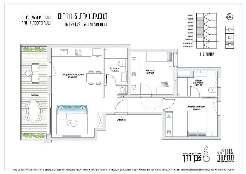 עיצובו של הפרויקט בא לידי ביטוי בכל היבט, מהמעטפת החיצונית של הבניין ועד לאחרון הפרטים בפנים הדירות שתתמלאנה במגוון המלא, לכל אחת חניה פרטית קונבנציונלית (תת קרקעית), ומפרט Premium המאופיין את הפרויקטים של חברת אבו דרך.